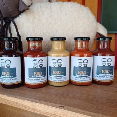 Die Grillsaucen des kleinen Unternehmens Bielefelder BBQ gibt es in verschiedenen Sorten, z.B. für Rind, Schwein, Geflügel.